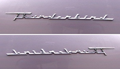 And here's a "Thunderbird" emblem on an actual 1961 Ford Thunderbird before and after the image is flipped horizontally: