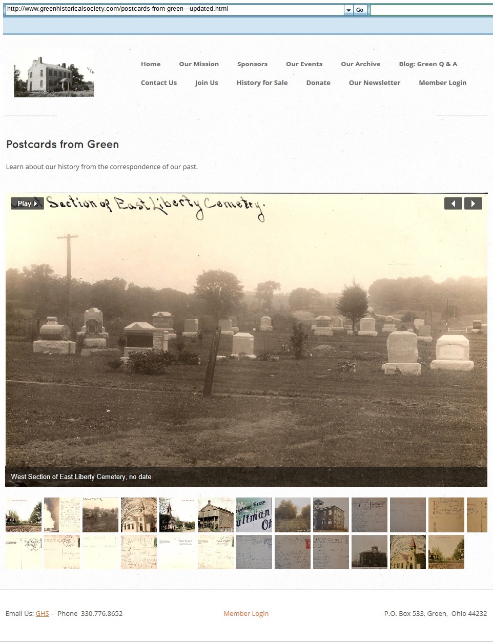 You may be interested in other issues discovered with the Green Historical Society web site that might confuse visitors. For example, ‘Postcards from Green - UPDATED’ is shown in the ‘Our Archives’ list when a user hovers the mouse pointer over ‘Our Archives’. However, the ‘Postcards from Green’ page cannot be accessed from the ‘Our Archives’ page. The ‘Postcards from Green’ page can only be accessed by clicking on ‘Postcards from Green - UPDATED’ in the list. There are other phrases (named sections) given in the ‘Our Archives’ list that are also not provided on the 'Our Archive' page.