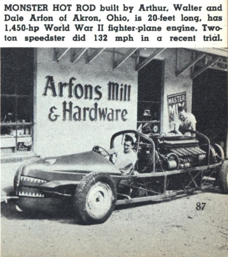 In 1954, Green Monster 2 clocked the highest top speed at 132.35 miles per hour at the first World Series of Drag Racing in Lawrenceville, Illinois.The image below is from that July 1956 issue of Rod Builder & Customizer magazine article above which indicates the photo is of Green Monster 1: