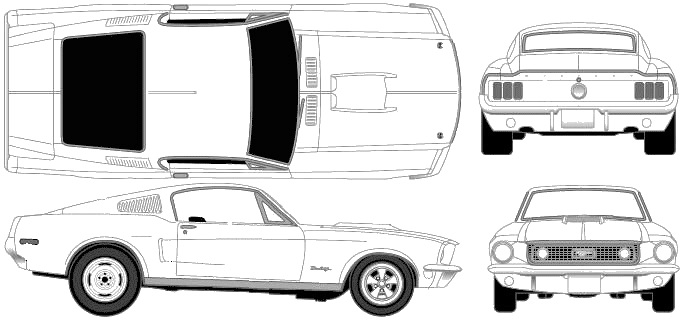 The image below shows all sides (except the left and bottom) of the 1968 Ford Cobra Jet Mustang: