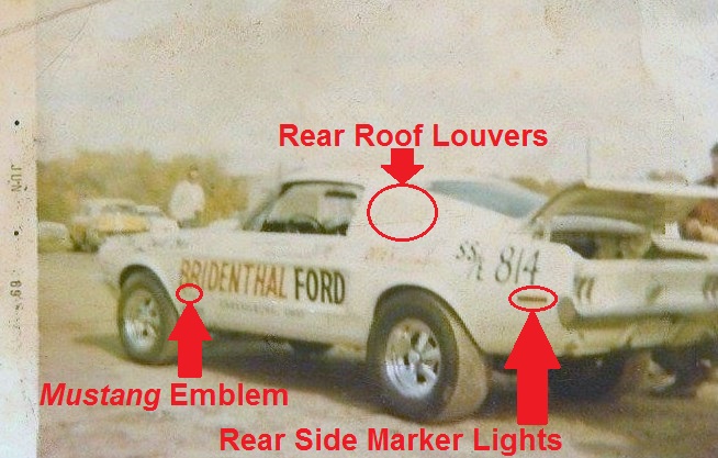 It also appears that the side Mustang emblems were on the vehicle when raced by Bridental Ford but were then removed.