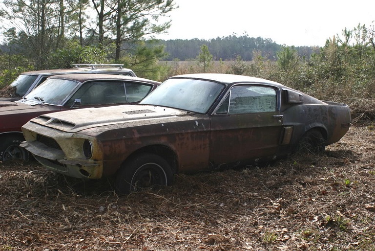 The rear roof louvers and rear side marker lights were removed from that 1968 Ford Cobra Jet Mustang (VIN: 8F02R135033), which was first purchased by Bridenthal Ford in Greensburg, Ohio.