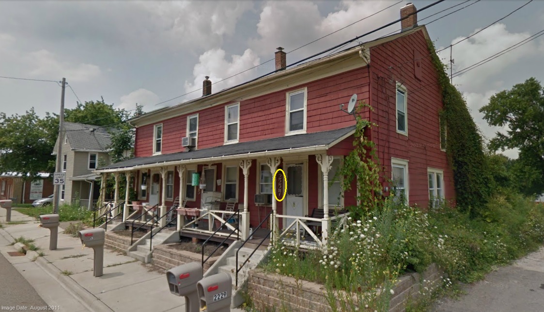 The photo below confirms the address is 2277 Greensburg Road as circled in yellow: