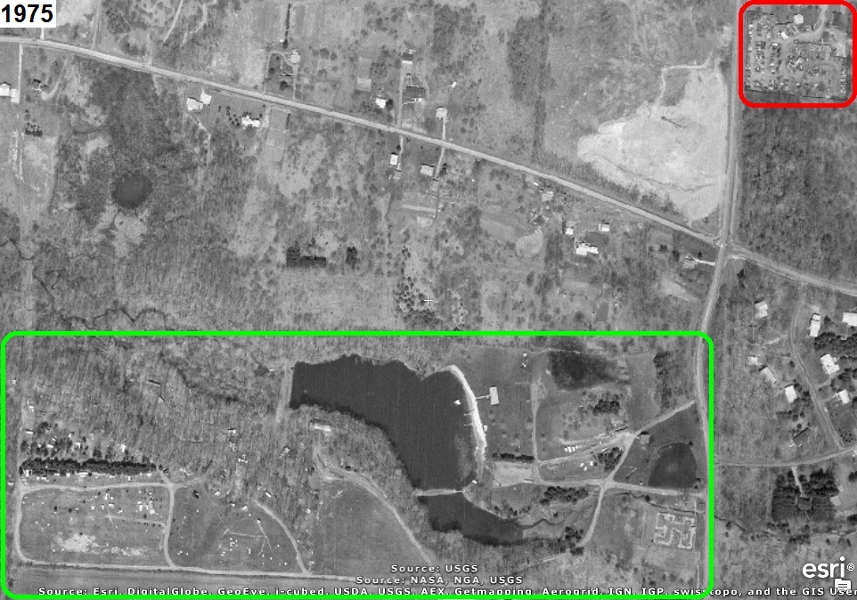 The aerial photograph below from 1975 includes a green rectangle (lower left) to identify Pine