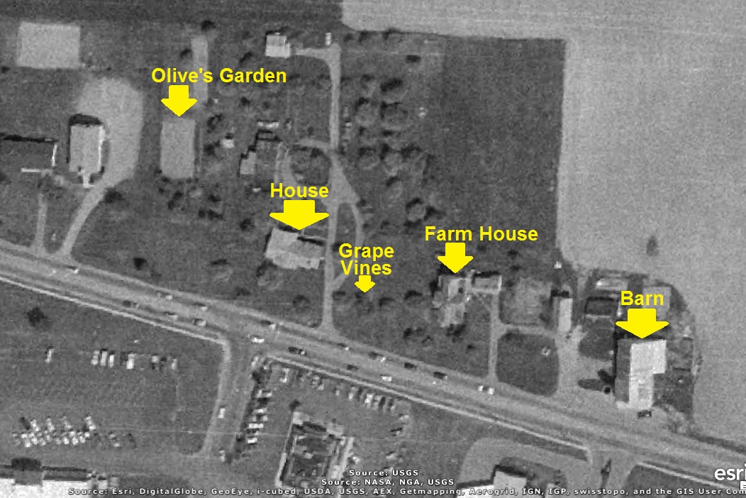 A recent aerial view of the area above is shown below. Note that the Grape Vines are still there!