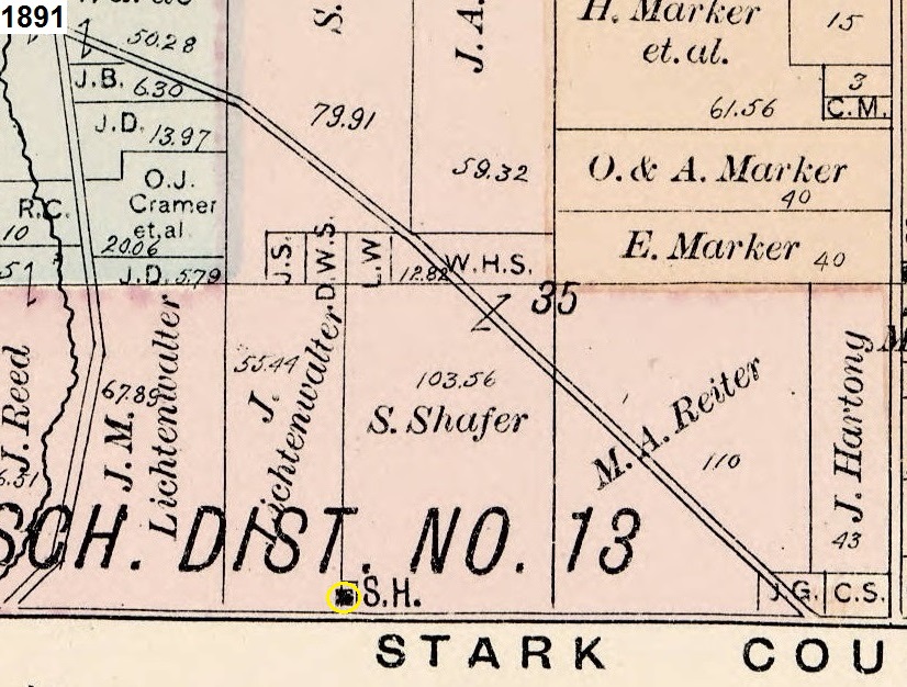 To determine exactly where the Lichtenwalter Schoolhouse was originally located, maps from 1891 and
