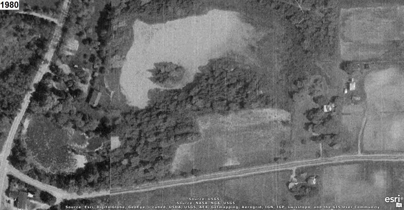 The 1942 aerial photo below (as well as 1934, 1950, 1958, 1965, 1972, and 1975 aerial photos) shows